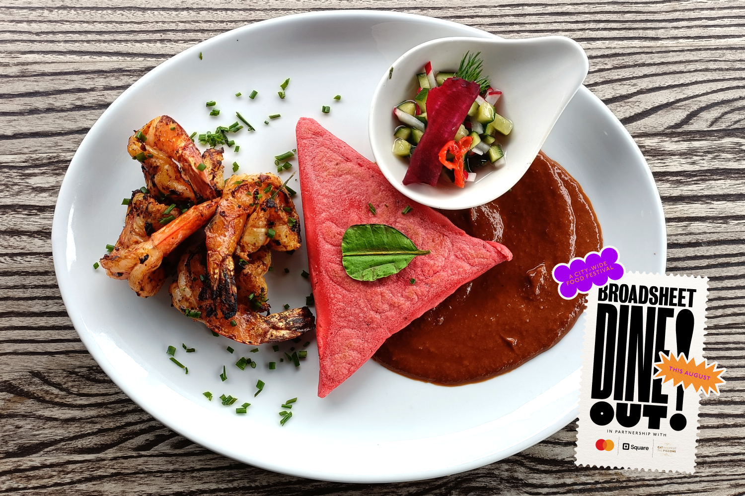 Exclusively crafted for Dine Out, this vibrant triangular tetela is made from our house-made corn masa, filled with stringy Oaxacan cheese, served with grilled prawns & finished with a rich, traditional mole sauce (also made from scratch, the only way we know how). Every bite is a little love letter to Mexico — its regional flavours, its craft, its soul.