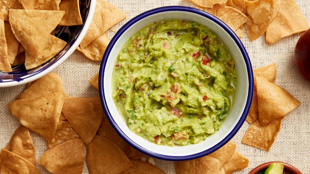 Guacamole is a true Aztec food, containing both avocados & tomatoes which both originated in what is now Mexico. The word Guacamole comes from two Nahuatl (Aztec language) words meaning avocado, & 'mole' which means sauce, or literally 'things smashed together into a sauce'. Here we share our family recipe. According to pre-Hispanic mythology, Quetzalcoatl, a Mexican god, gave the guacamole recipe to the Toltecs & then it spread throughout Mesoamerica. Avocados & guacamole are an important part of the Mexican gastronomy, where it is used as a topping on many dishes. It goes perfectly with tacos, meat, or as a dip which you scoop out with totopos (tortilla chips).